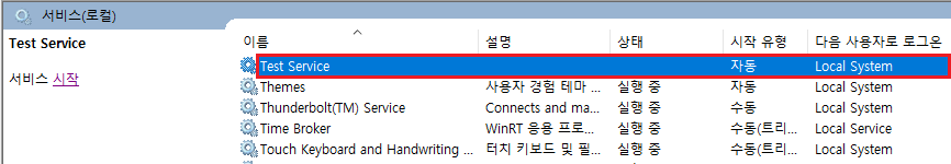 1) Windows Service 에서 Watchdog 서비스(ex, Test Service) 시작