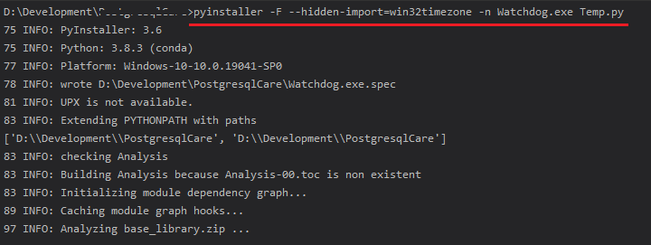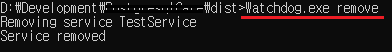 Windows Service에 등록하기 위한 Watchdog 프로그램을 빌드하는 경우 pyinstaller를 활용하여 아래의 명령어로 exe 파일을 만들면 됩니다.