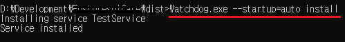 #exe파일명 --startup=auto install