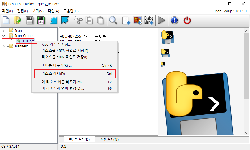 결국 제가 최종적으로 선택한 방법은 pyinstaller를 통해 exe 파일을 만들 후 "Resource Hacker"라고 하는 유틸리티를 통해 기본 icon을 제거하는 방식으로 진행하였습니다.
