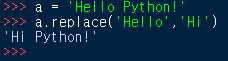 - 특정 문자열을 치환하는 경우 replace 라고 하는 함수를 통해 문자열 치환이 가능합니다.