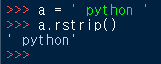 - 특정 문자열에서 오른쪽에 위치한 공백을 제거하고자 하는 경우 rstrip 함수를 통해 제거가 가능합니다.