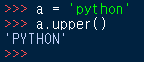 - 특정 문자열을 소문자에서 대문자로 바꾸고자 하는 경우 upper 라고 하는 함수를 통해 손쉽게 변경이 가능합니다.