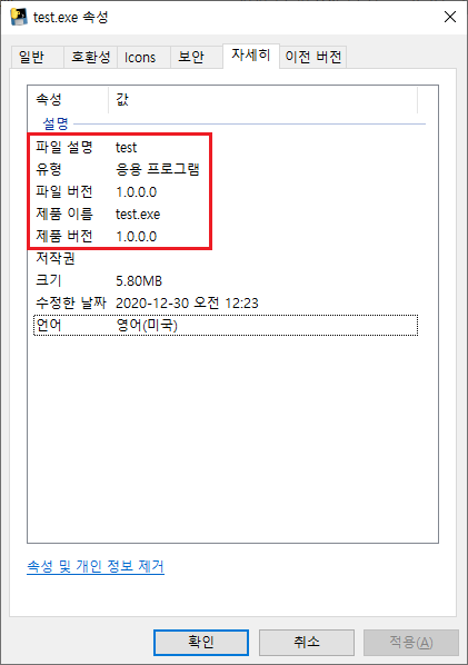 추가적으로 exe 실행파일을 좀더 고급스럽고 전문가적인 느낌을 주기위해서도 exe 실행파일에 파일 버전 정보를 설정하는 것을 개인적으로는 추천해 드리고 싶습니다.