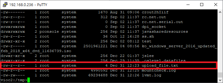 파일이 정상적으로 업로드되면 아래와 "sftp upload success." 메시지가 출력이 될 것이며, 대상 서버에 접속해 보면 업로드한 파일이 업로드된 것을 확인할 수 있습니다.